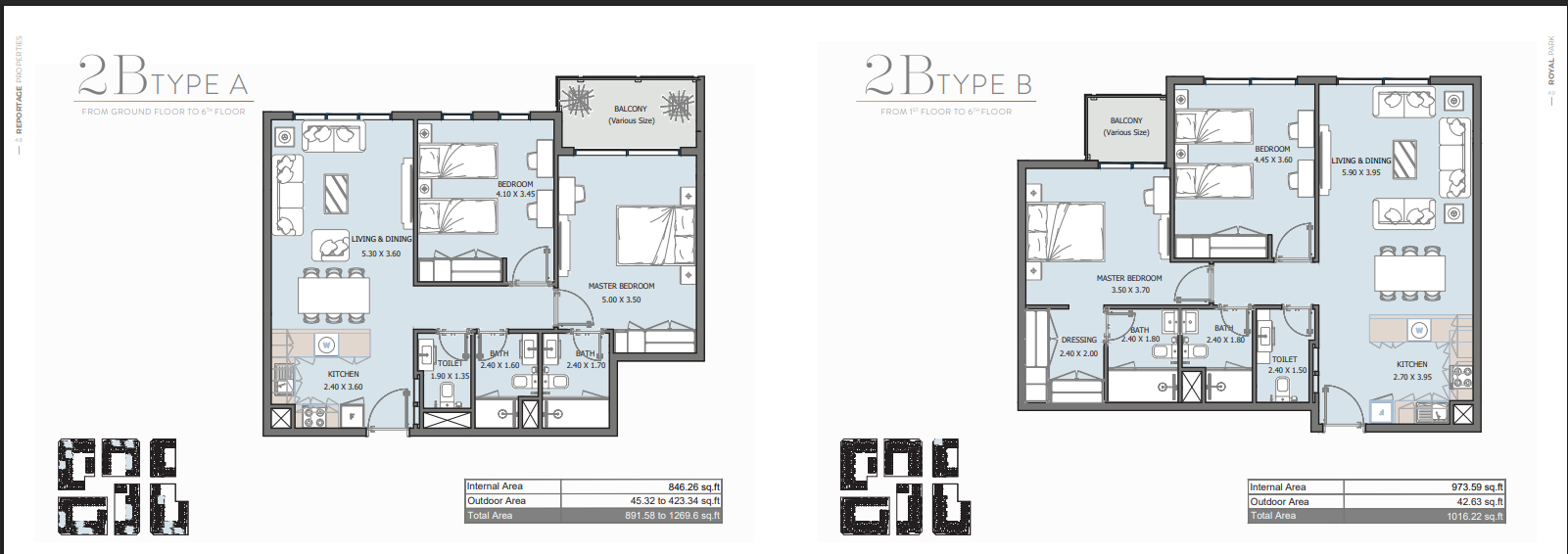 Royal Park - Masdar floor plan details include property type, size by square foot and number of bedrooms